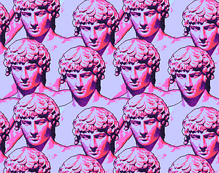 Рогалик в эстетике vaporwave 90-х с разнообразным оружием и системой его улучшения.